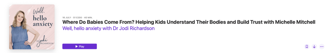 Let’s be honest—talking to our kids about sex, puberty and where babies come from can bring up more anxiety for us than them. In this episode, Dr. Jodi Richardson is joined by educator, author, and parenting expert Michelle Mitchell to guide parents through these tricky conversations with compassion, clarity, and confidence.